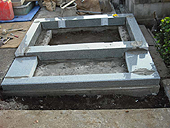土留(根石)の部分を据付けます。この土留の高さで最終的な高さが決まります。