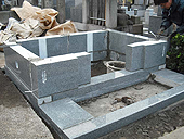 外柵(周り)を全て据付けた後、墓石(本体)の部分を据付け、最後に目地をして完成です。